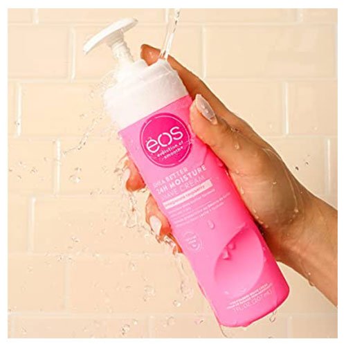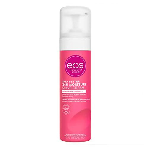 Our bright & juicy pomegranate raspberry eos shaving cream has notes of sweet pomegranate, tart raspberries and watery lotus blossom. Get your softest, smoothest (and closest) shave ever. Our rich, non-foaming shaving cream for women contains instantly moisturizing shea oil + lasting protection shea butter for incredible 24-hr hydration and lasting skin comfort, even for your bikini line. Soothing Aloe conditions + calms for the silky smooth shave your skin deserves. eos shave + in-shower body lotion can be rinsed off or left on for awesomely smooth skin. Say hello to smooth, comfortable, wet + dry, protection with eos skin care. Say goodbye to nicks, cuts, irritation, and razor burn. Directions: apply a thin layer to the skin, and distribute evenly. Shave, touch, smile.